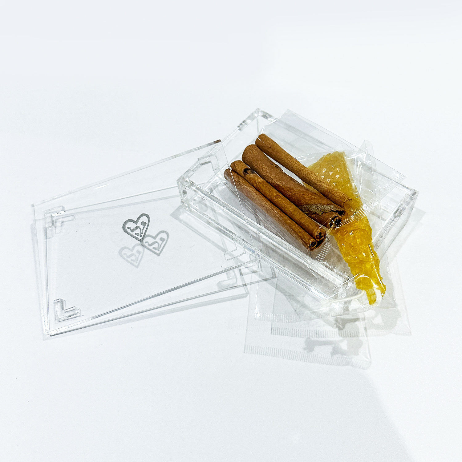 Beautiful and Elegant Perspex Havdalah Set Packaged in a Malka Ella sleeve Havdalah Candle & Spices included